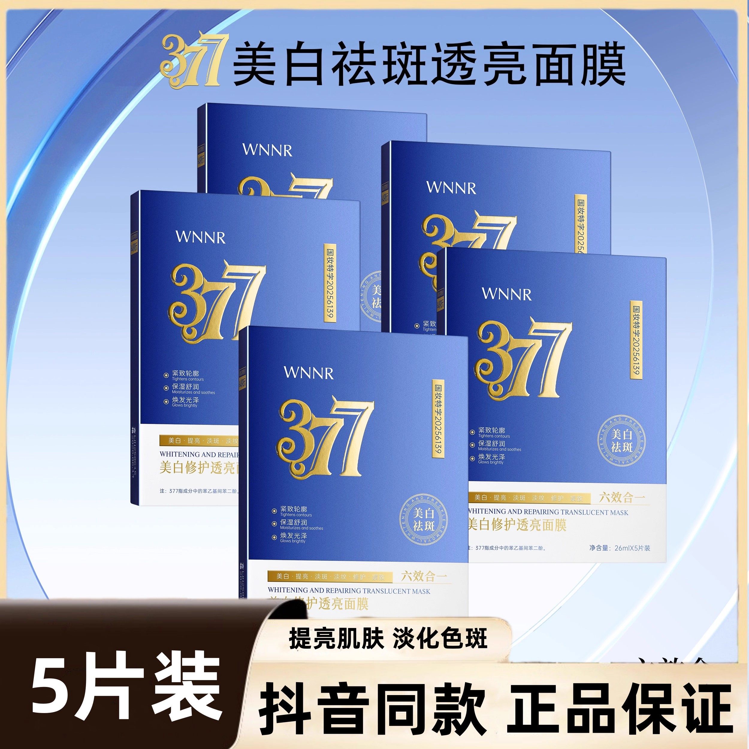 拍一发五盒377美白祛斑面膜保湿补水淡化色斑提亮肤色护肤轻薄