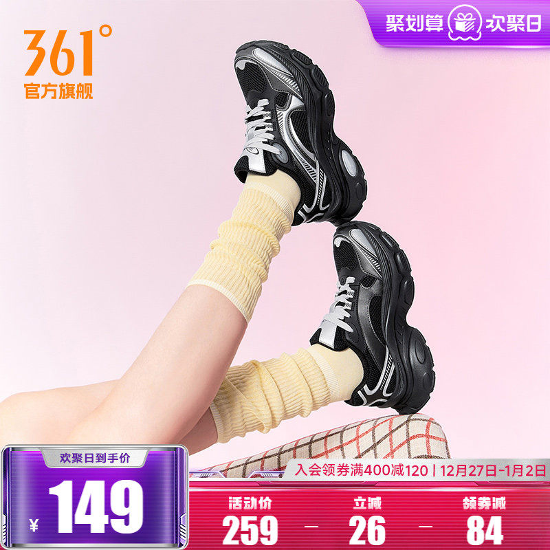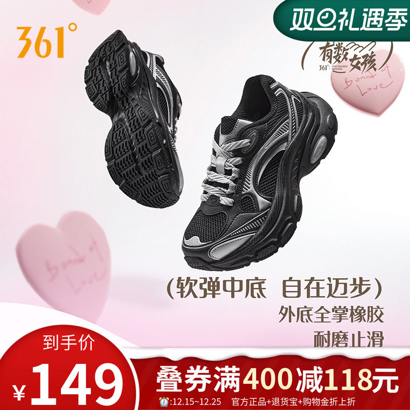 爱心鞋 361度老爹鞋女鞋2025冬季新款网面透气鞋子软底运动休闲鞋