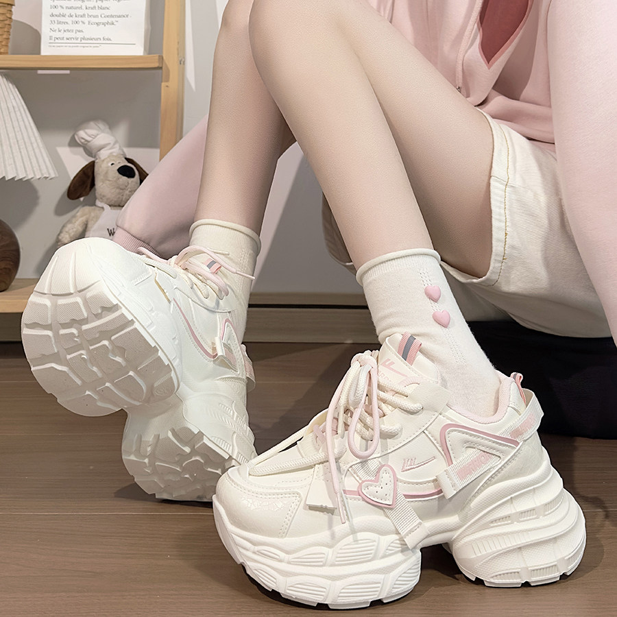361爱心鞋女鞋休闲鞋银色跑鞋防滑透气运动鞋厚底增高复古老爹鞋