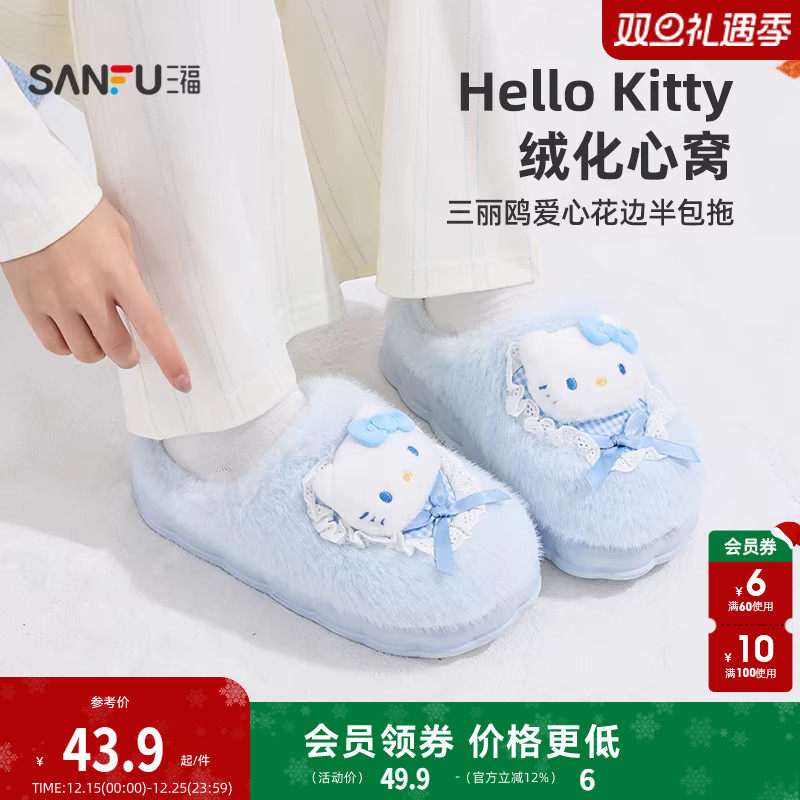 三福居家三丽鸥爱心花边半包拖 日用生活好物居家拖鞋845694