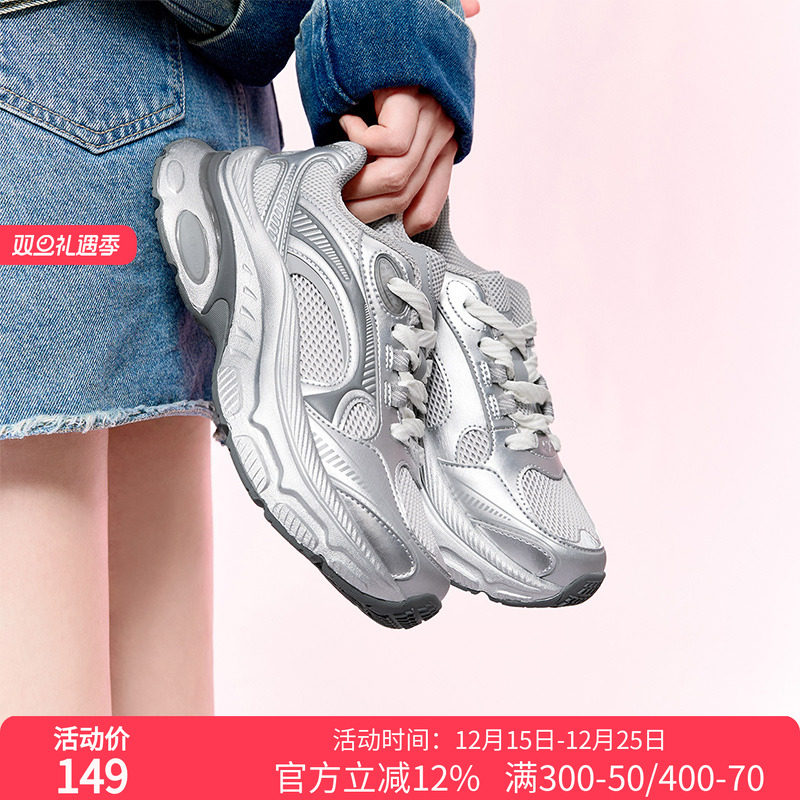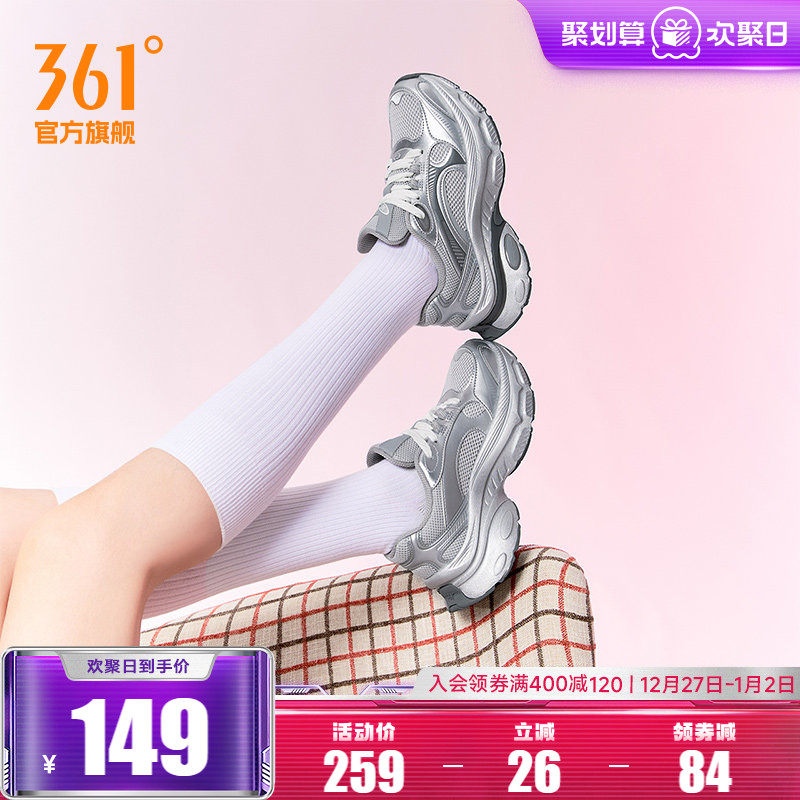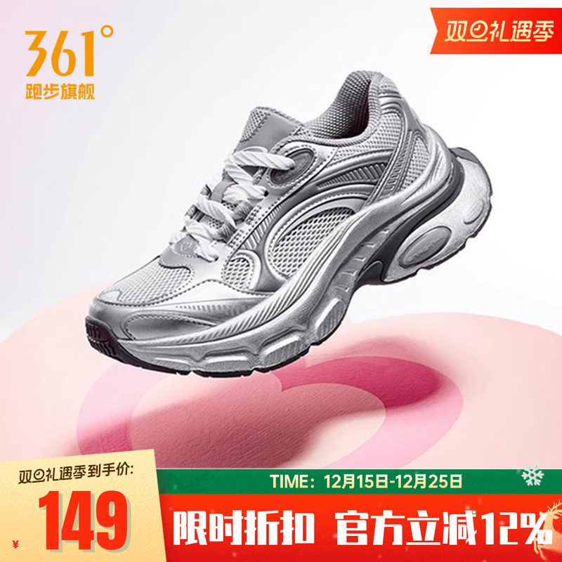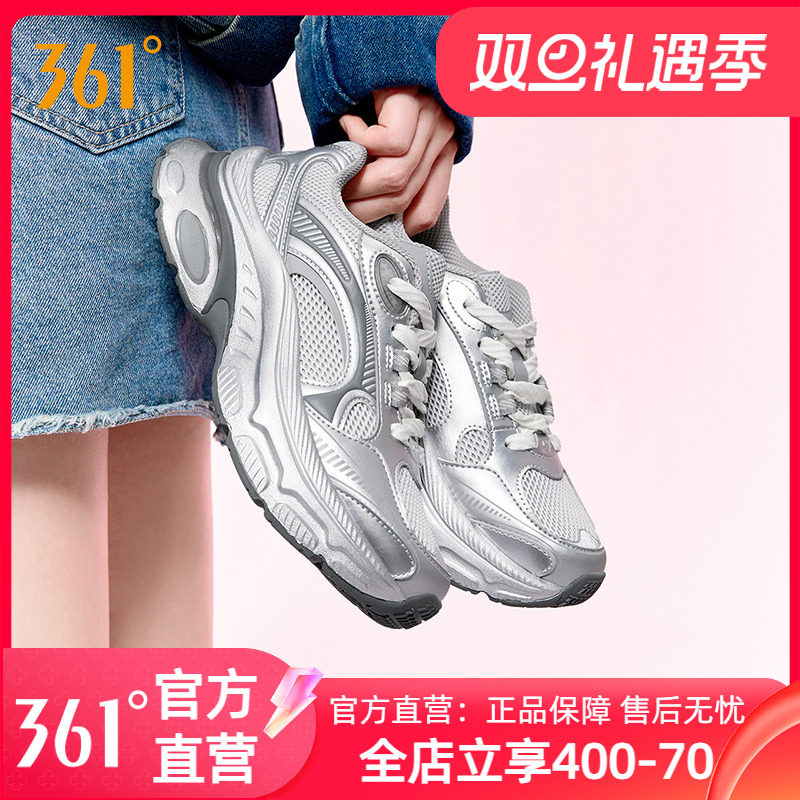 爱心鞋361女鞋复古跑鞋防滑运动鞋银色厚底老爹鞋透气舒适休闲鞋