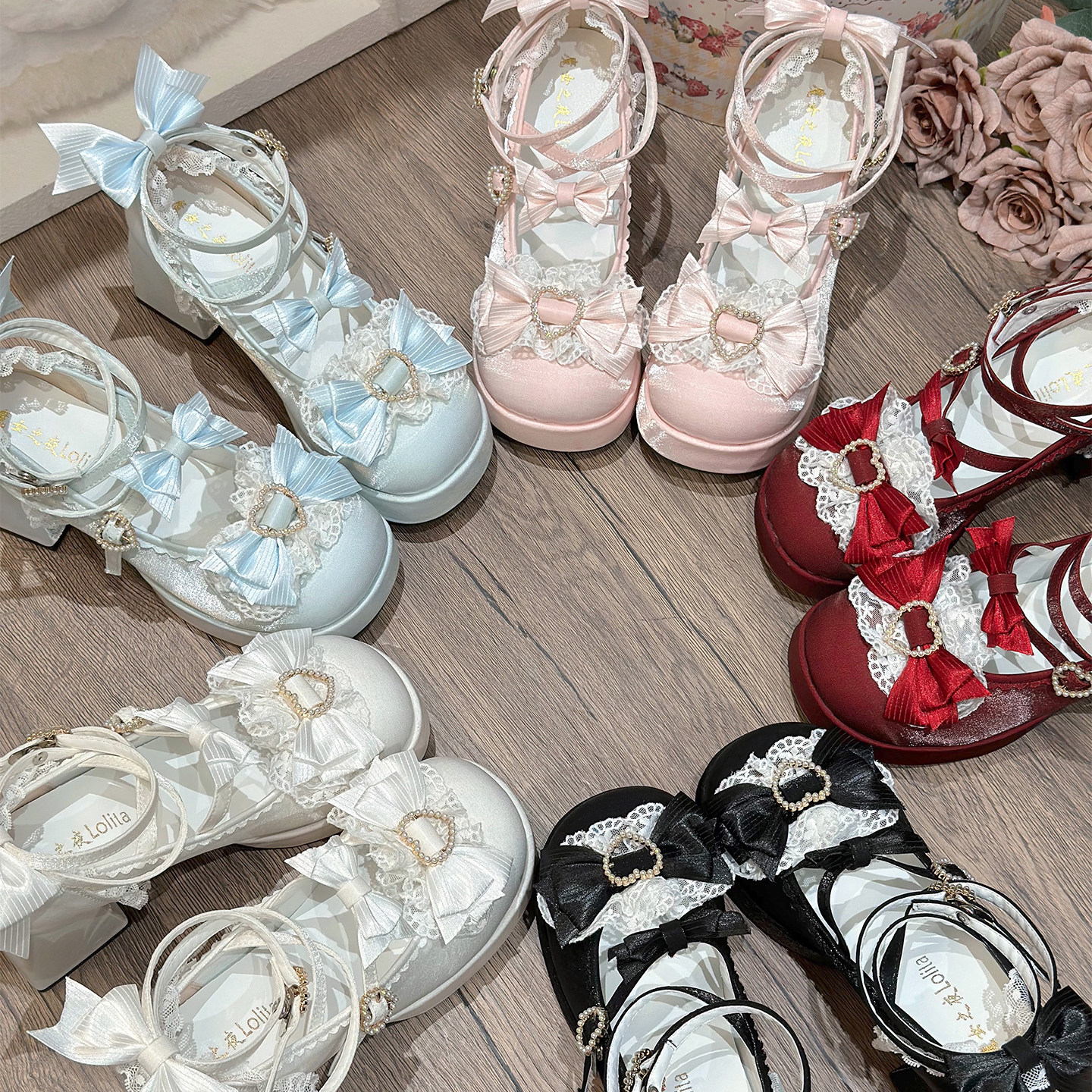 魔女之夜 原创「爱心之恋」lolita高跟鞋粗跟甜美蝴蝶结圆头单鞋