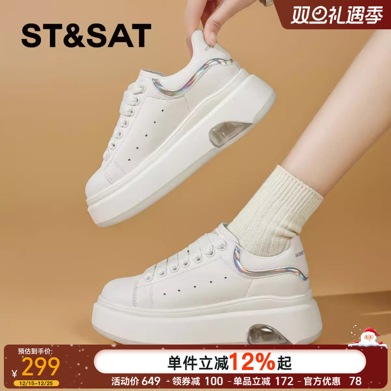 星期六爆款爱心厚底6cm小白鞋女2025新款软底增高百搭休闲鞋