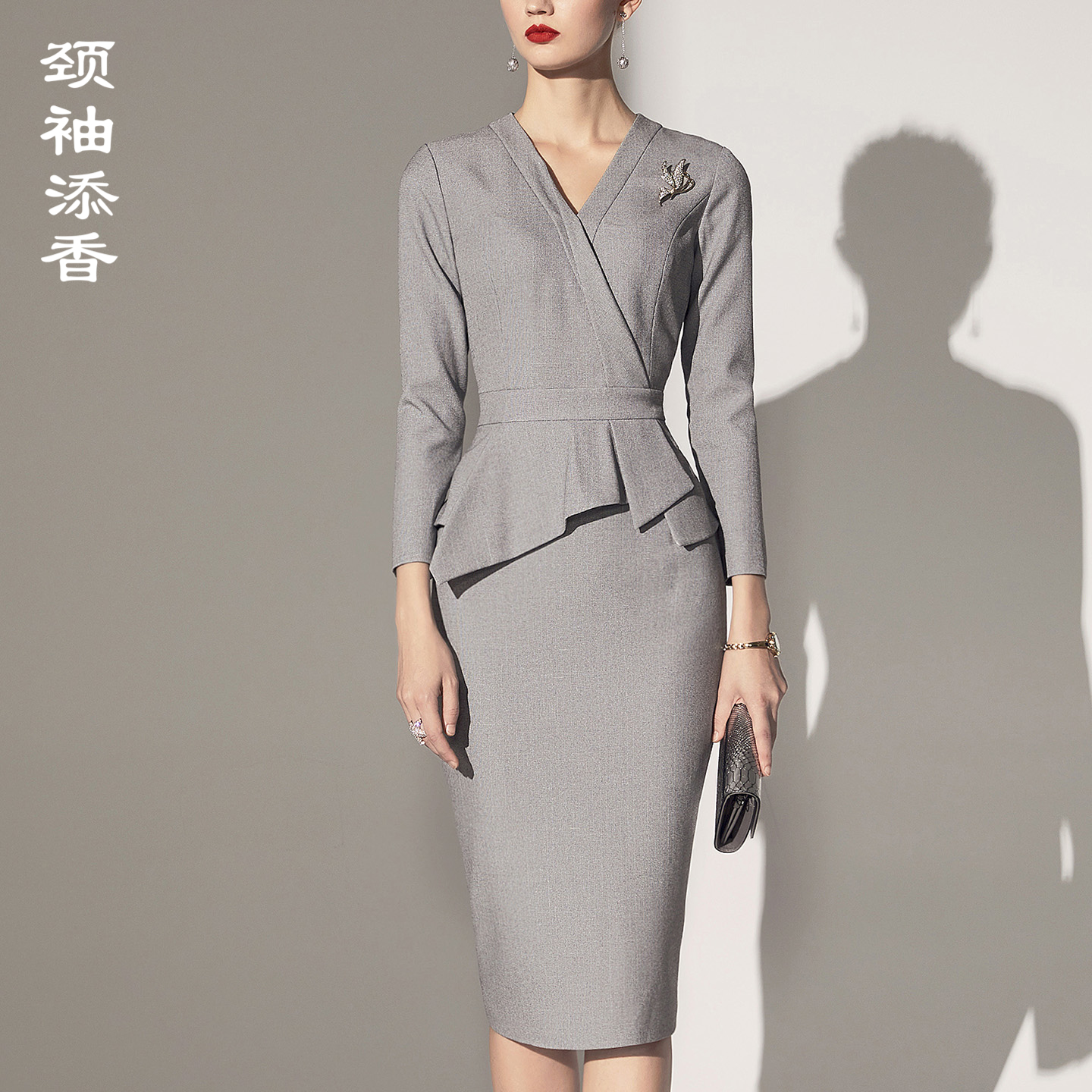 颈袖添香秋高端职场女装气质显瘦修身包臀工作装职业装OL连衣裙