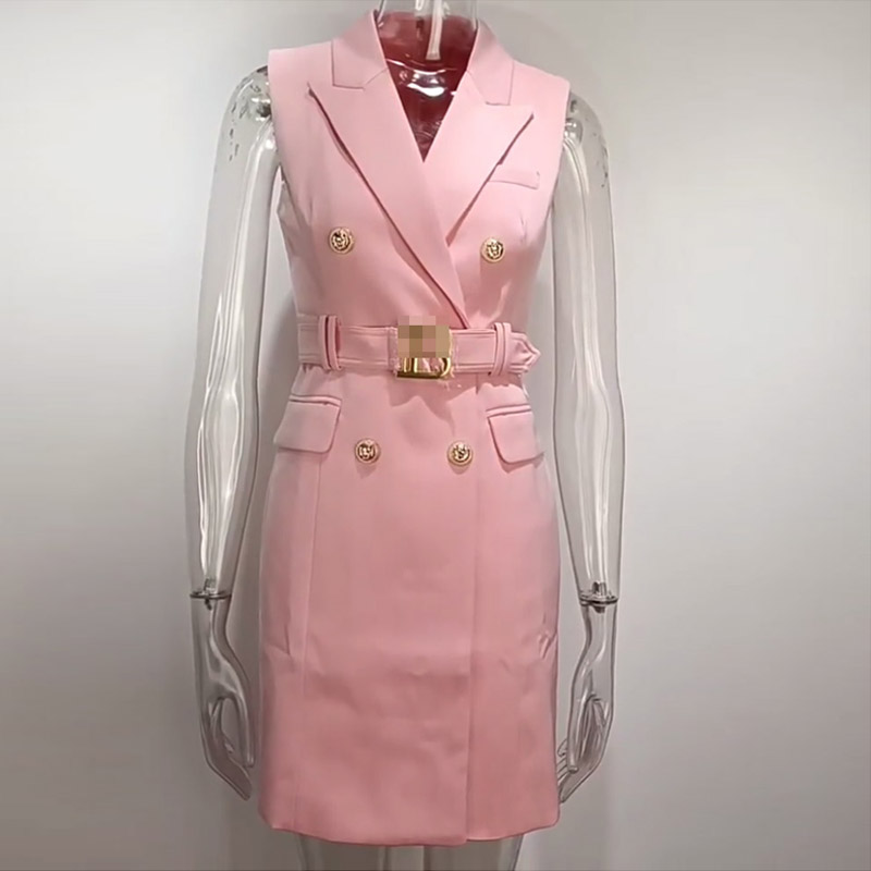 特#秋冬新款女装连衣裙经典双排扣修身显瘦通勤OL中长款马甲裙子