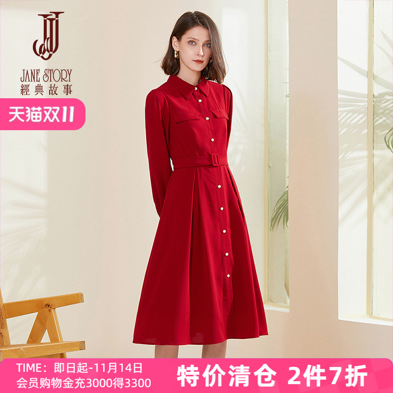高端简约红色连衣裙女2025新款春季长袖修身通勤职业OL气质衬衫裙