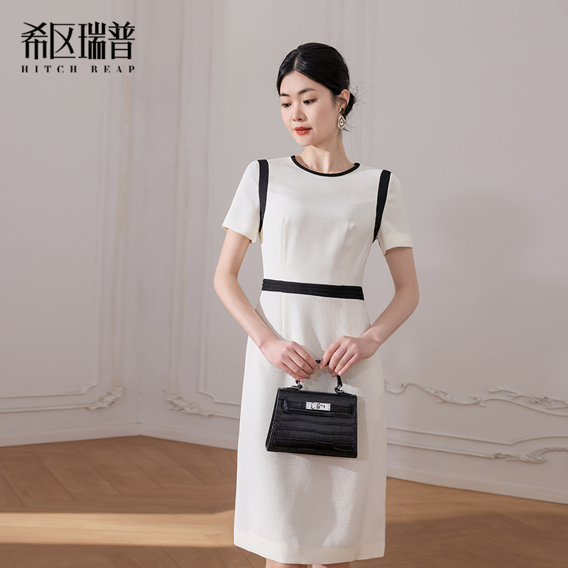 希区瑞普高端气质简约连衣裙黑白拼接OL职业修身裙显瘦包臀裙夏季