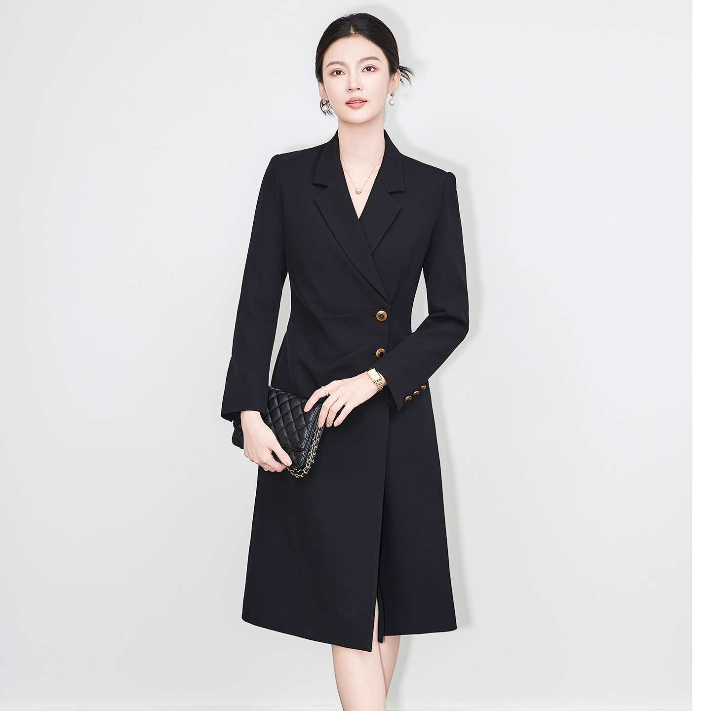 绝色 高端干练气质女装 ol职业西装领连衣裙秋女神范西装连衣长裙