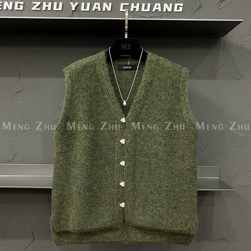 高端欧货2025年早秋新款V领爱心单排扣设计感小众叠穿毛线马甲女