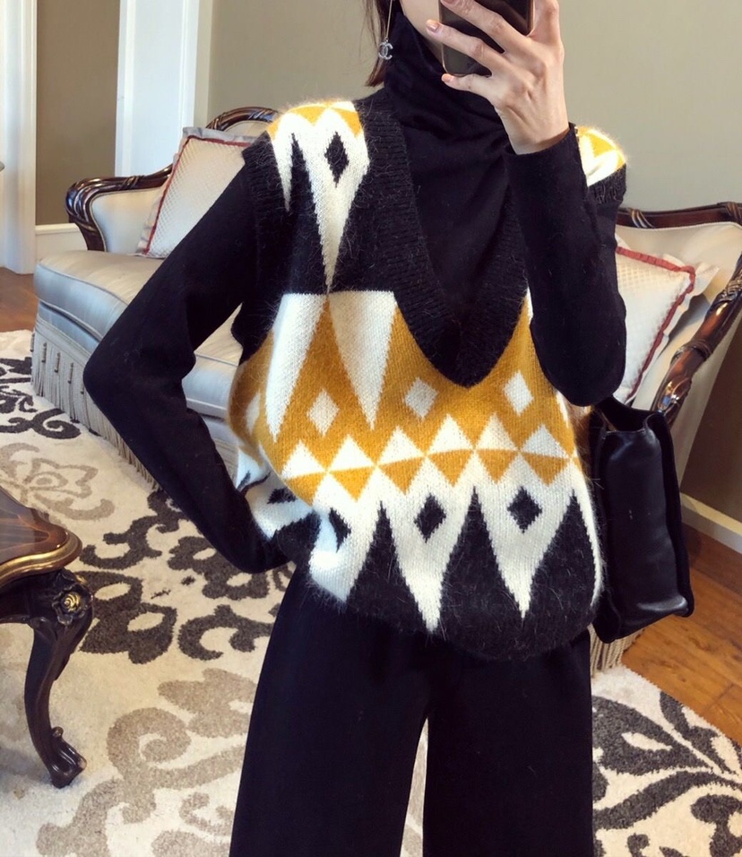 针织毛线马甲女外穿新款配裙子叠穿坎肩短款无袖毛衣背心冬季套头