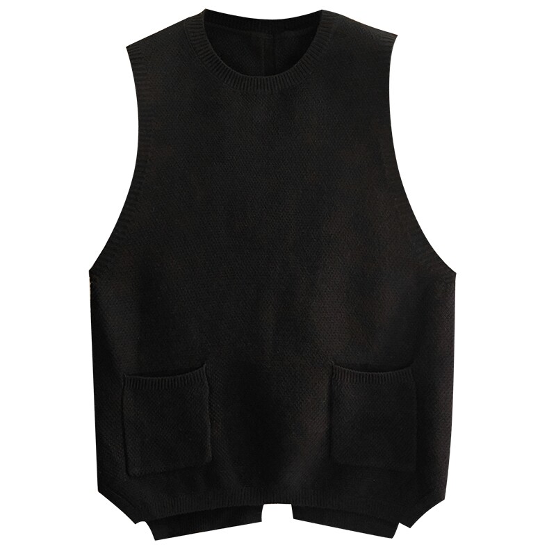 V62720 休闲文艺圆领套头宽松斜逢开襟百搭毛线马甲女秋 米兰宣言
