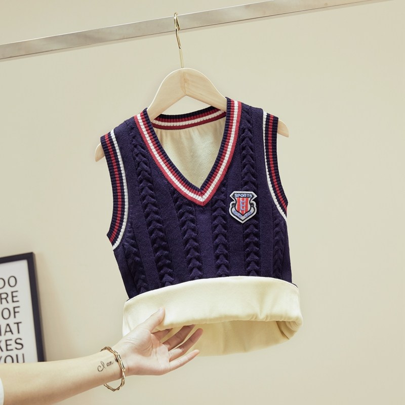 儿童针织背心男童毛线马甲女童毛衣坎肩马夹秋冬套头纯棉加绒加厚