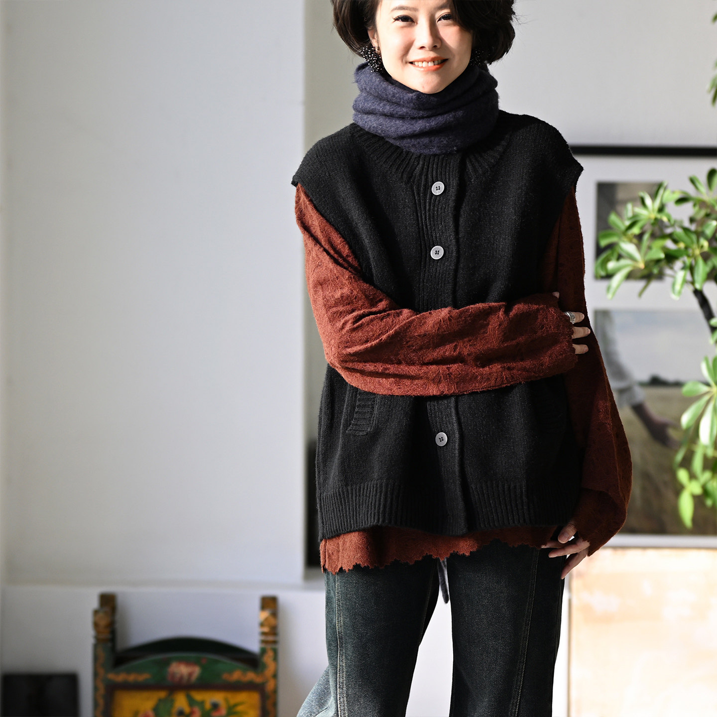 V63190 文艺通勤圆领单排彩扣宽松混纺毛线马甲女25秋冬 米兰宣言
