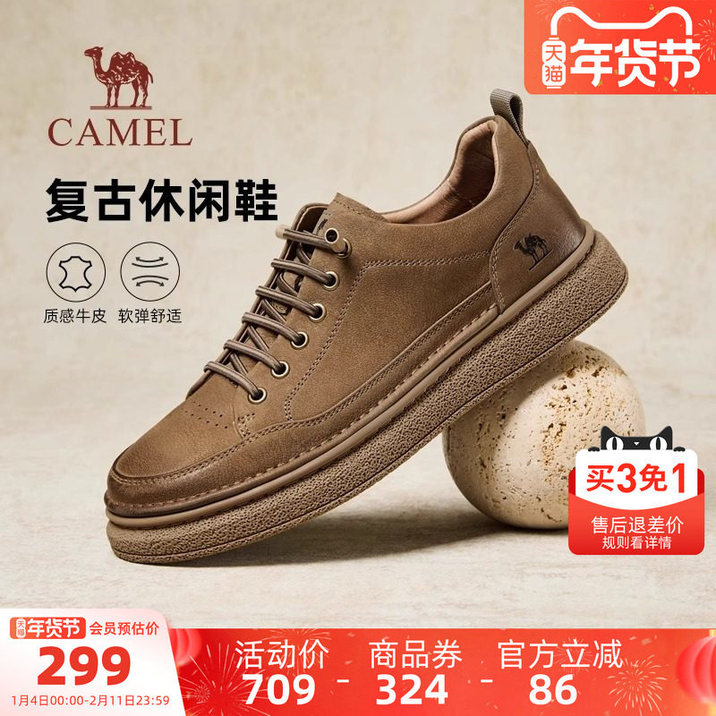 骆驼男鞋2025秋季新款复古板鞋舒适潮流鞋子男免系百搭英伦休闲鞋