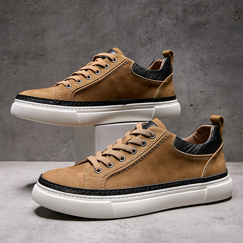 春夏男鞋真皮休闲时尚青年板鞋皮鞋男软底透气牛皮户外休闲鞋英伦