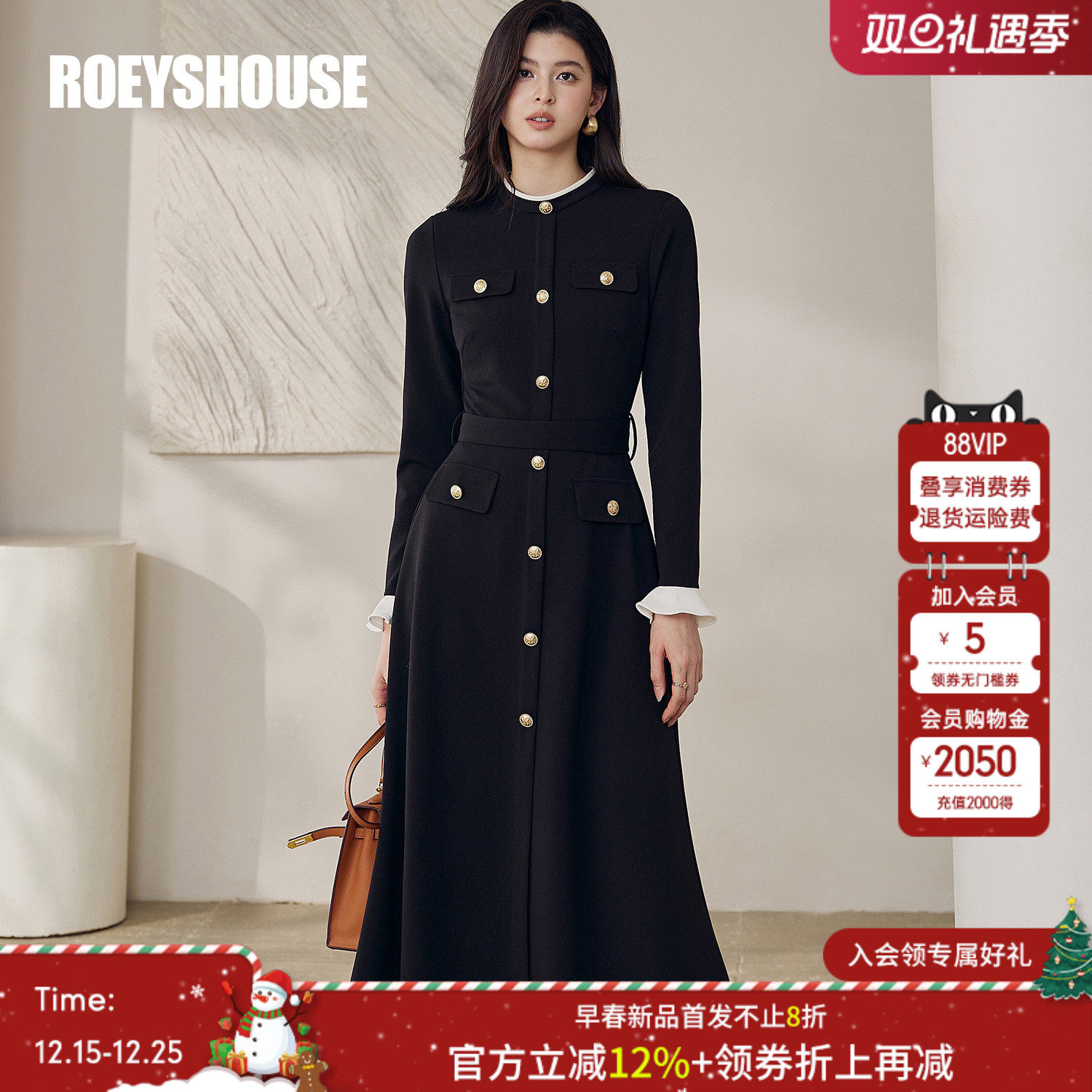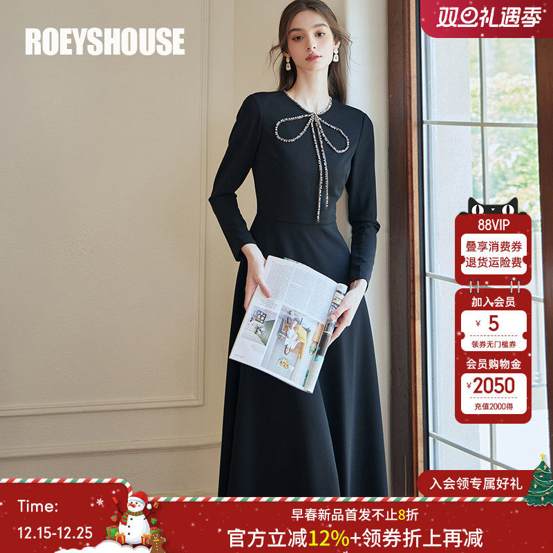 罗衣优雅蝴蝶结大摆连衣裙2025冬新款黑色内搭针织中长裙子09862