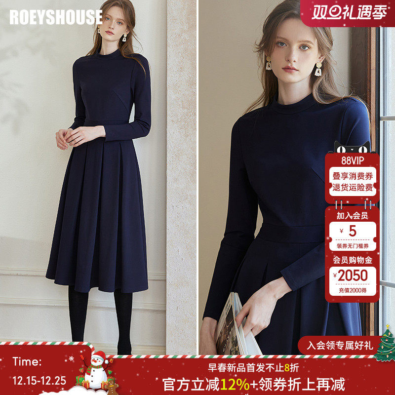 罗衣高级收腰大摆连衣裙2025冬季新款气质藏青色针织打底裙09674
