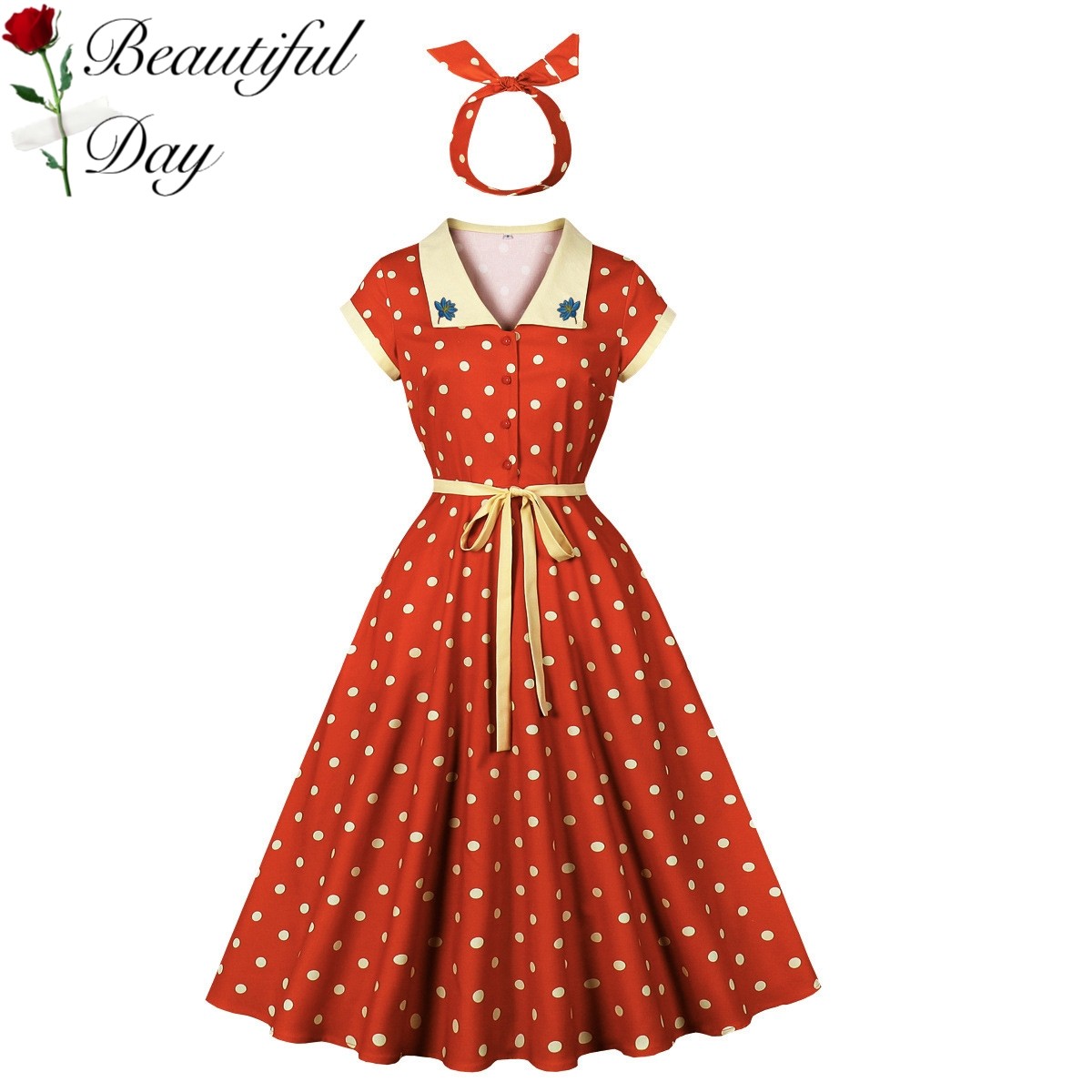 欧美复古年代感气质波点显瘦港风减龄年会表演派对短袖大摆连衣裙