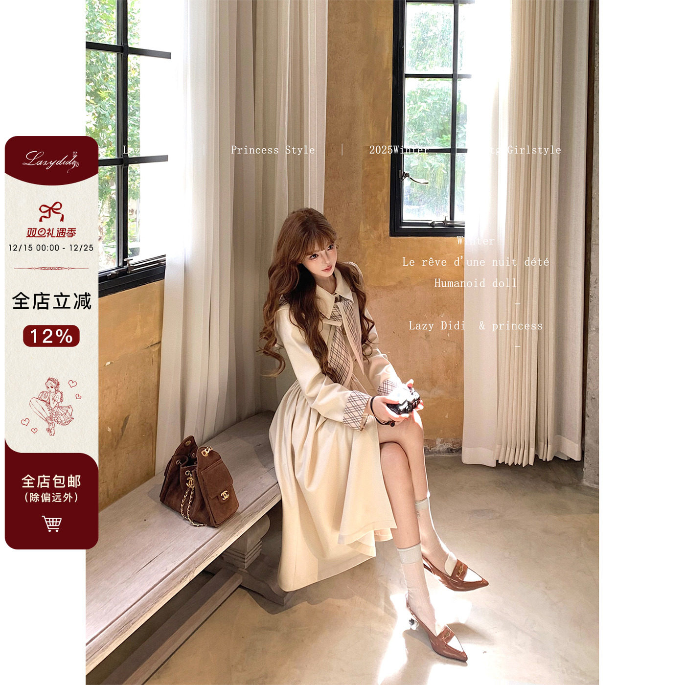 Lazy Didi伦敦书信 可拆卸领巾收腰大摆连衣裙设计感收腰显瘦A字