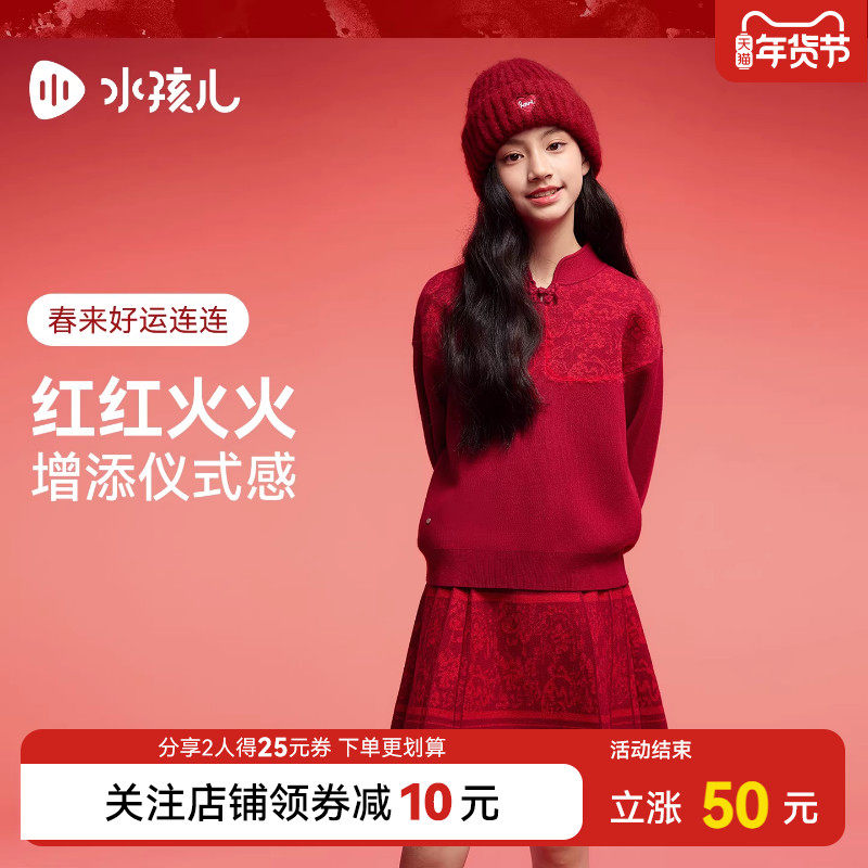 水孩儿女童毛衣短裙套装国风拜年服新款新年装儿童宝宝裙子两件套