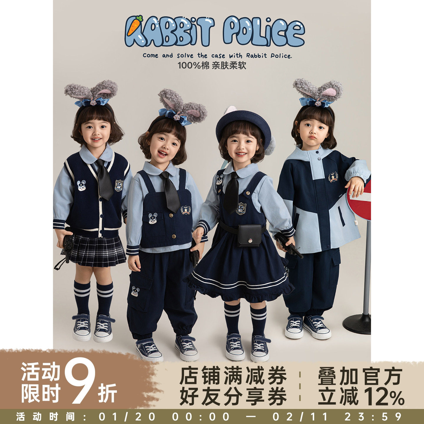 幼悠女童春季新款娃娃领衬衫无袖马甲短裙宽松束脚裤兔子警探套装