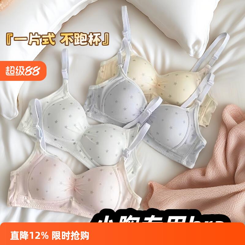 甜美星星少女内衣学生碎花大胸显小胸无钢圈上托薄款舒适透气文胸