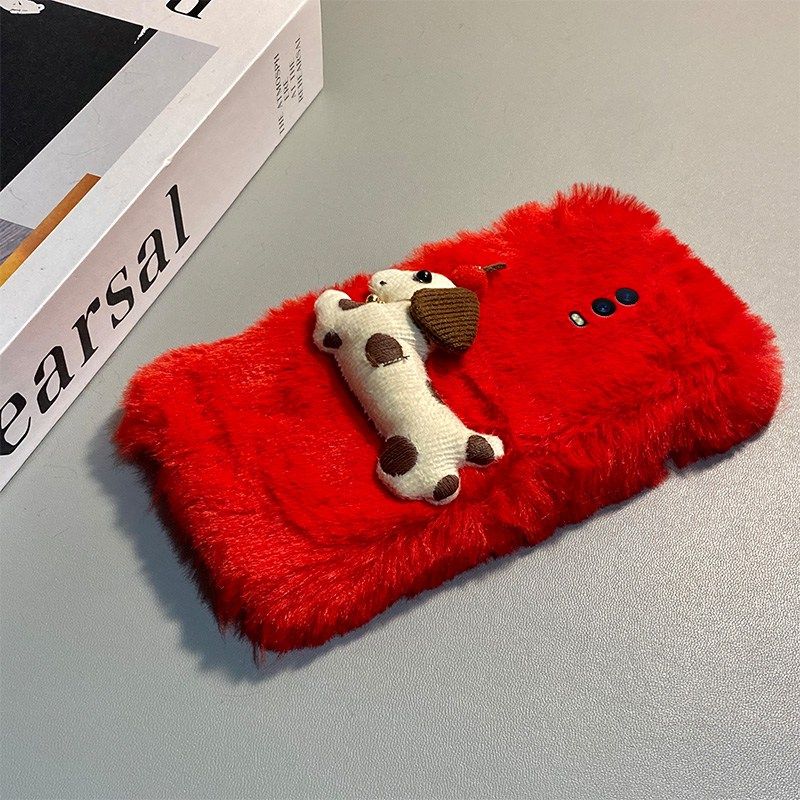 波点腊肠狗适用oppor17手机壳r15x秋冬r11splus毛绒r11s红色r9新年r9plus卡通r7s毛茸茸r17pro立体oppo冬天女