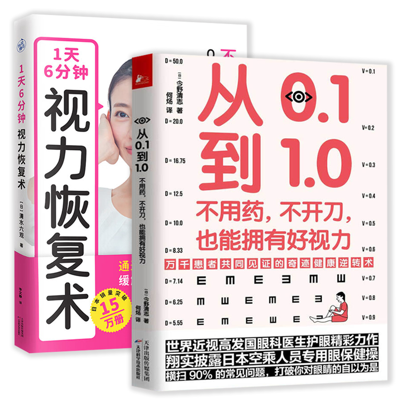 正版包邮 2册从0.1到1.0不用药不开刀也能拥有好视力+1天6分钟视力恢复术 近视治疗恢复保护视力健康知识眼科保健书籍