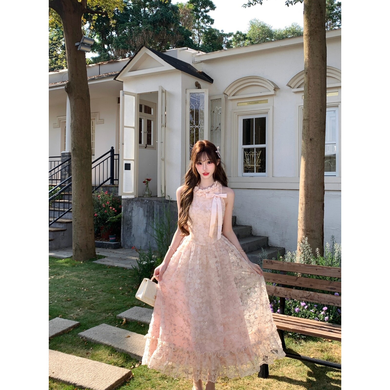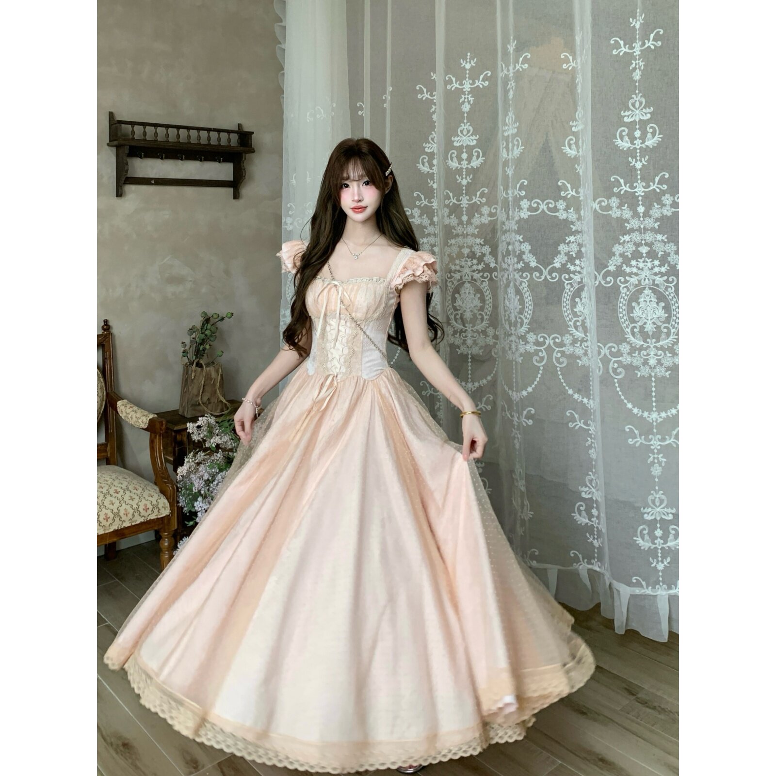 越韩小鱼Musefish 仲夏夜梦境长裙粉色 法式波点网纱裙蕾丝连衣裙