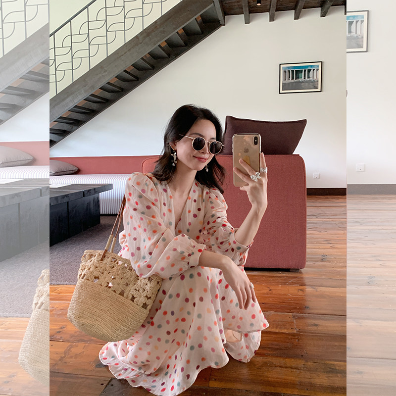 越韩小鱼Musefish 仲夏夜梦境长裙 法式波点网纱裙蕾丝少女连衣裙