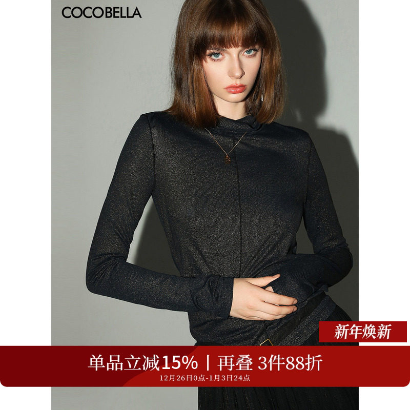 COCOBELLA奢感黑金细针坑条针织衫秋冬高领打底衫长袖T恤TS0029