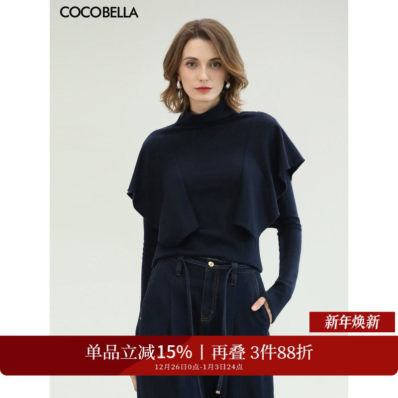 COCOBELLA设计感荷叶边假两件针织衫软糯高领斗篷毛衣MZ0069