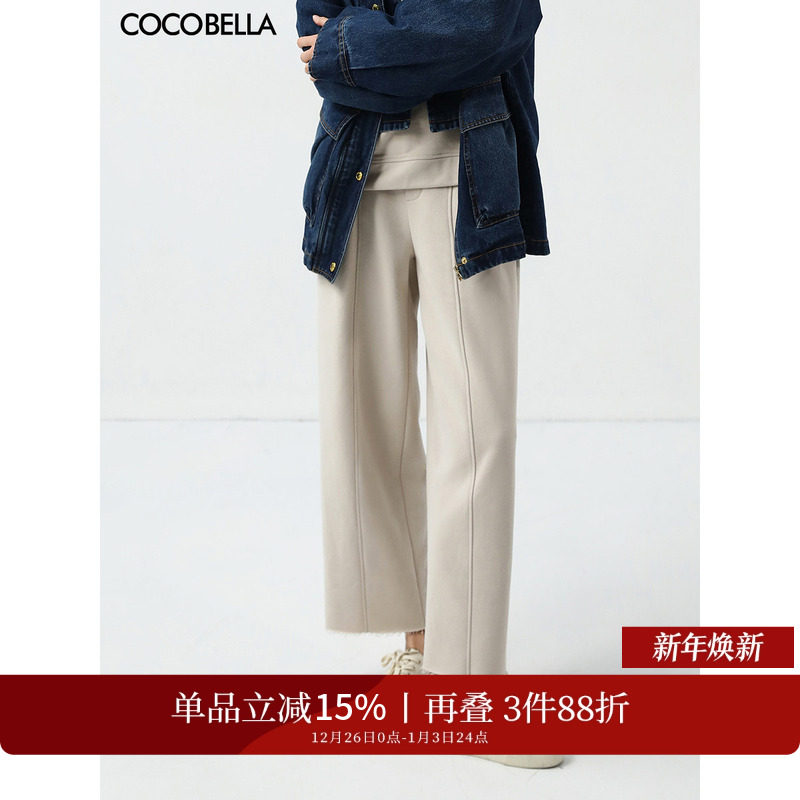 COCOBELLA高级休闲风抗静电自发热磨毛直筒裤装饰线长裤PA7045-2
