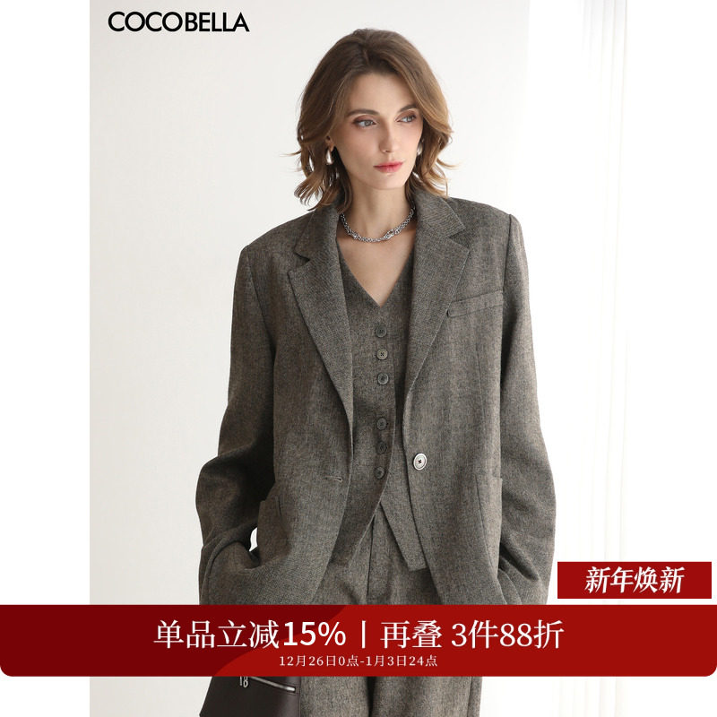 COCOBELLA老钱风精纺花纱羊毛正肩西装女秋气质休闲外套SI7029