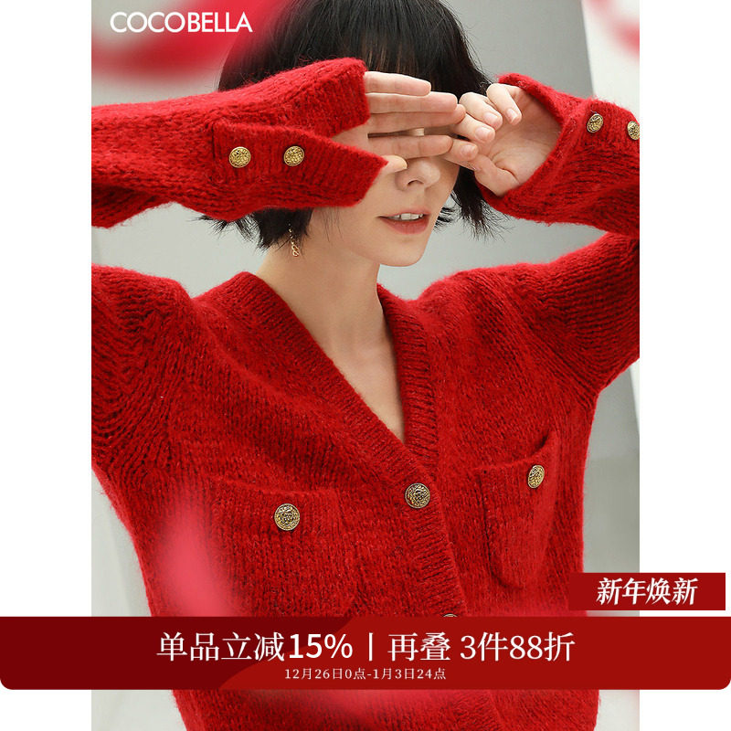 COCOBELLA新年红小香风软糯毛衣休闲针织红色外套女MZ101-3