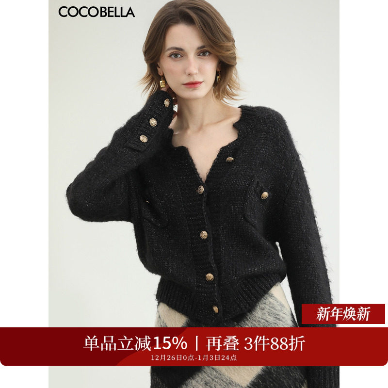COCOBELLA细闪亮片针织衫开衫女松弛感藏青色毛衣外套MZ189-3