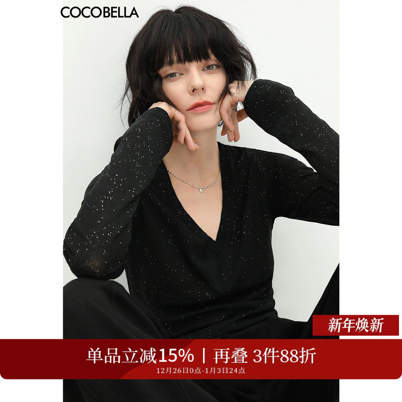 COCOBELLA[璀璨星河]细闪亮片上衣女软糯毛衣V领针织衫MZ3109