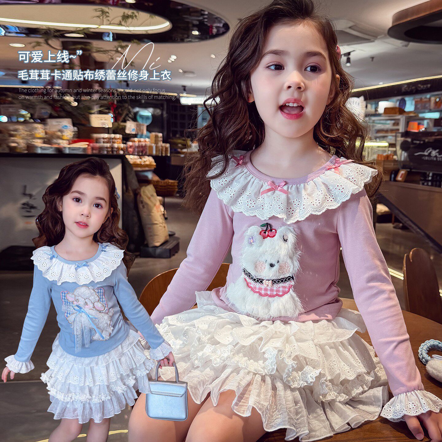 女童春装上衣2026新款儿童韩版立体卡通蕾丝花边长袖打底衫小女孩