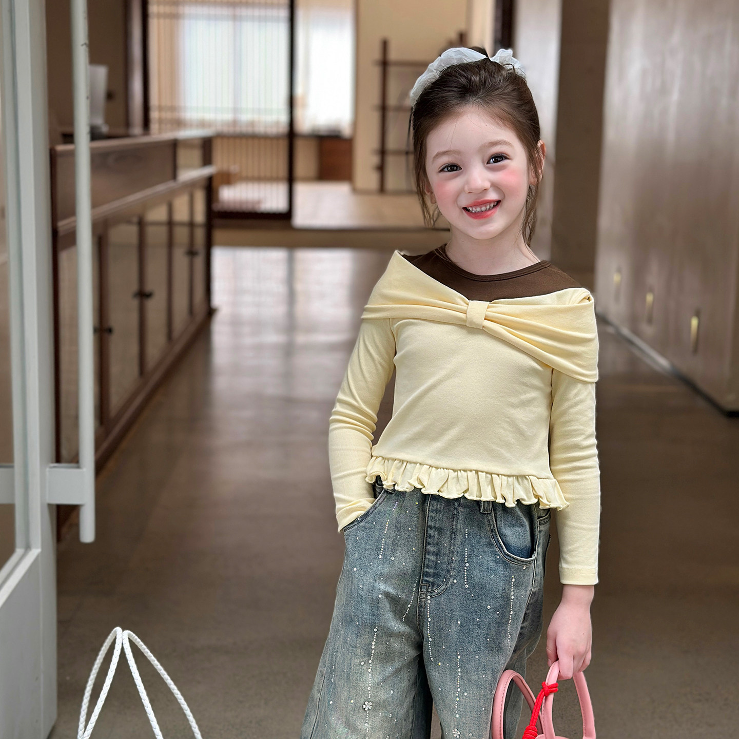 栀了成长记童装女童韩版假两件蕾丝上衣2026春季儿童甜美长袖T恤