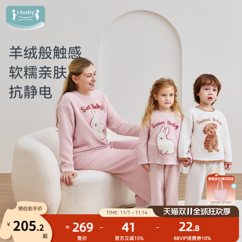 【LJQ】ibaby儿童半边绒亲子家居服加厚保暖内衣套装抗静电羽毛纱