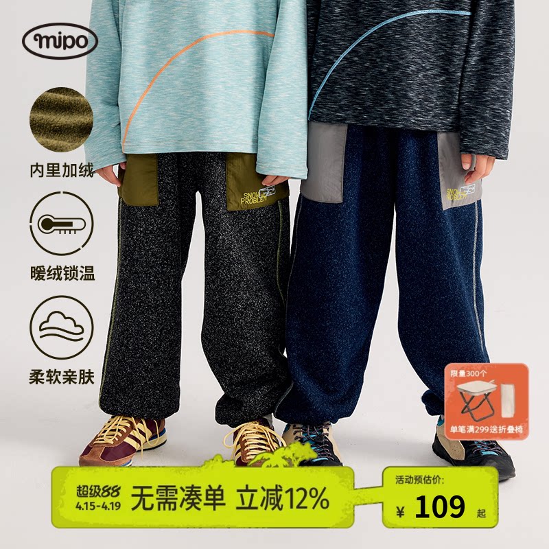 mipo冬季儿童裤子加绒加厚保暖舒适卫裤男女童户外休闲裤运动长裤