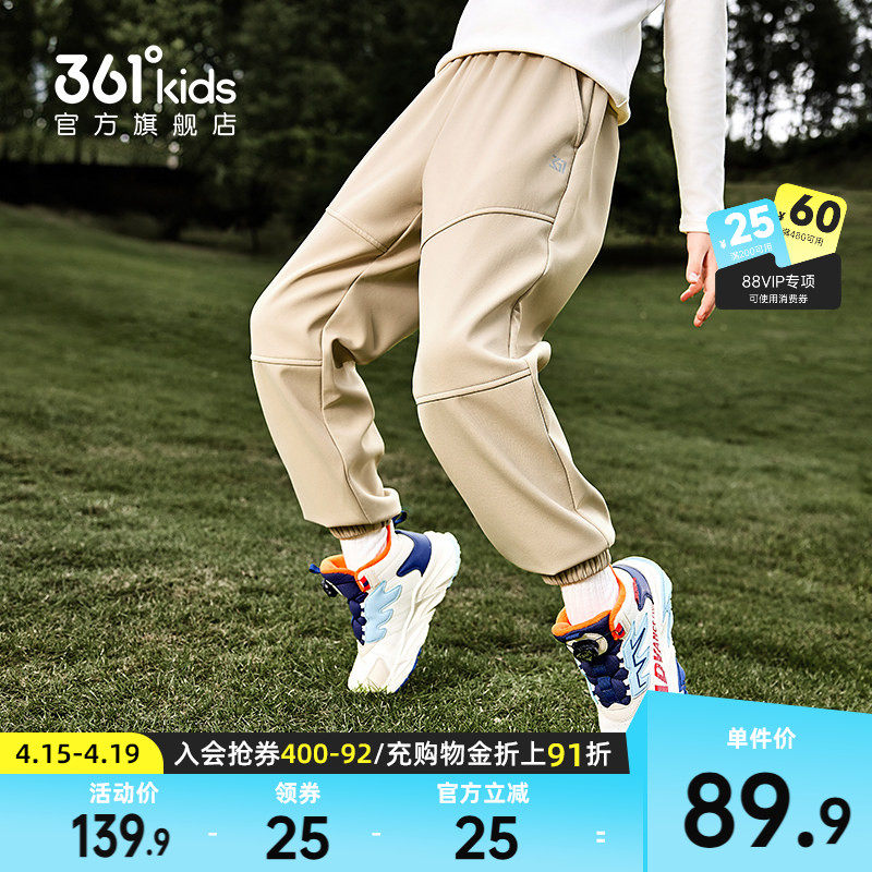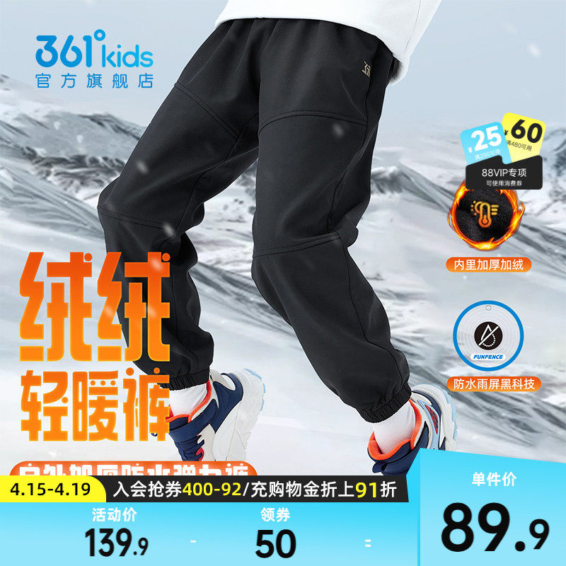 雨屏科技|361°童装男女童梭织加绒加厚长裤2025冬季新款运动长裤