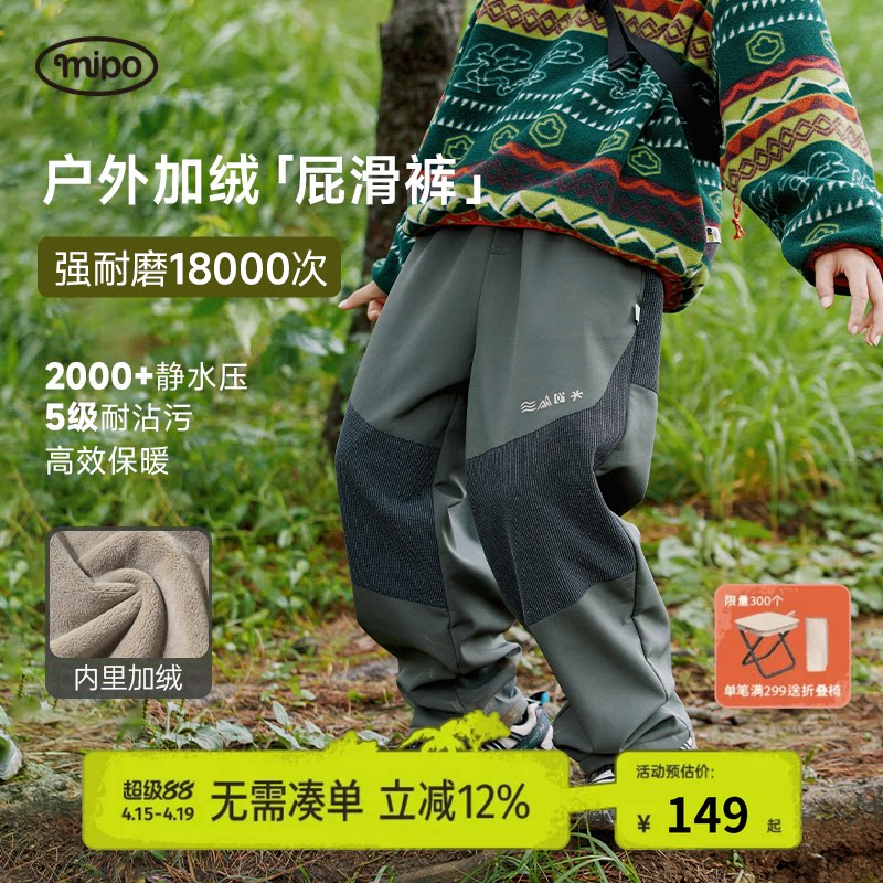 【屁滑裤】mipo冬季儿童长裤女男童户外登山运动耐磨加绒加厚防水