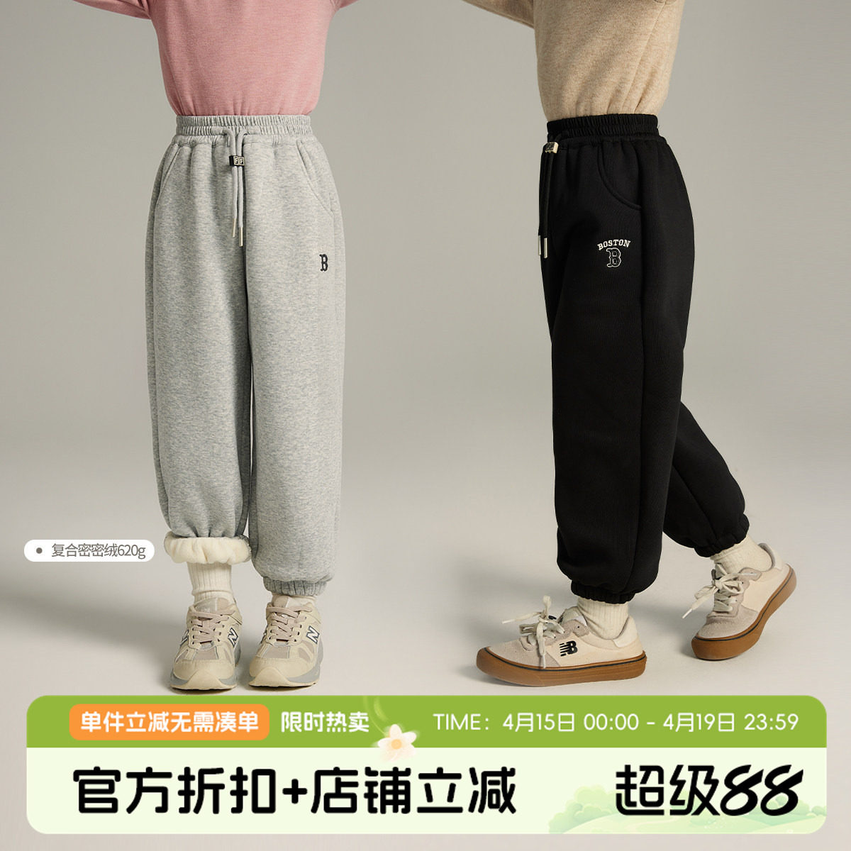 巴拉巴拉童装儿童运动裤男童女童冬装加绒长裤子保暖加厚一体绒潮