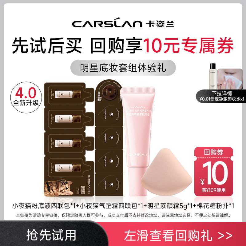 【旅行装】卡姿兰小夜猫粉底液气垫霜素颜霜便携彩妆套装正品官方