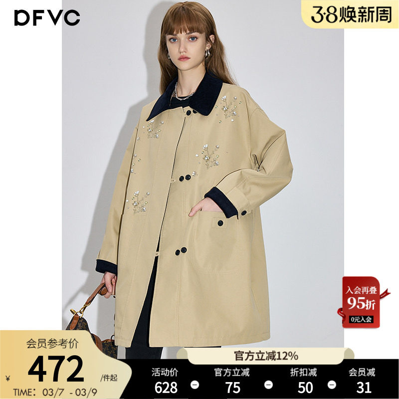dfvc卡其色韩版中长款风衣外套女2026春季新款宽松显瘦小个子大衣