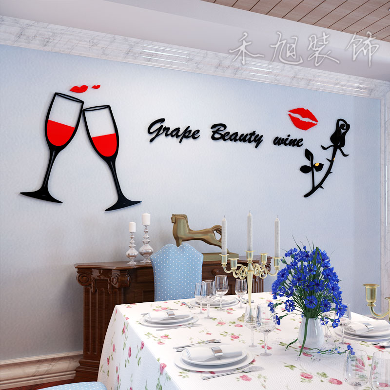 红酒杯创意个性3d水晶立体墙贴床头客餐厅亚克力电视背景墙面装饰