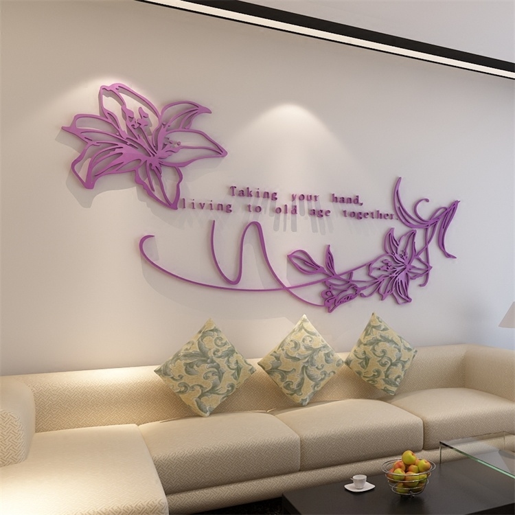 百合花亚克力3d水晶立体墙贴电视背景墙客厅贴画电视卧室沙发墙