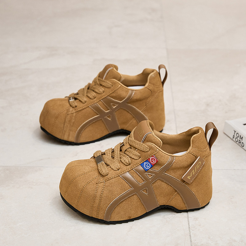 小个子美拉德真皮厚底德训鞋2025秋冬内增高小码女鞋3233勃肯板鞋