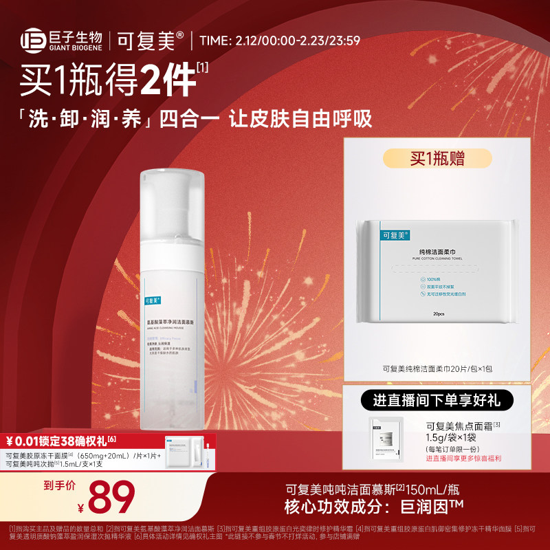 可复美吨吨洁面慕斯氨基酸洗面奶清洁保湿清爽男女士洁面乳150mL